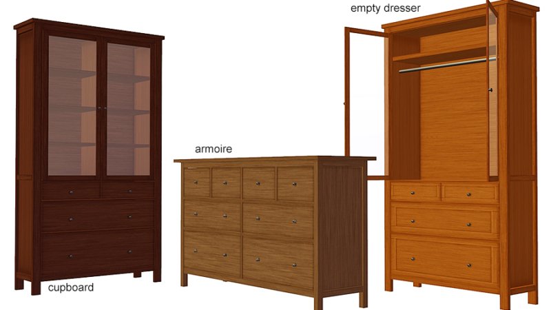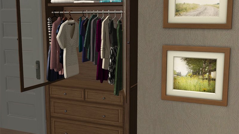 So, here, take a non-functioning dresser, cupboard, and empty wardrobe, in most of Pooklet’s natural colors. I didn’t do all the gray colors and landmine, because there wasn’t enough of a difference to be worth it. As you can see by the preview image, each color comes in plain and a paneled variation. Meshes are included.