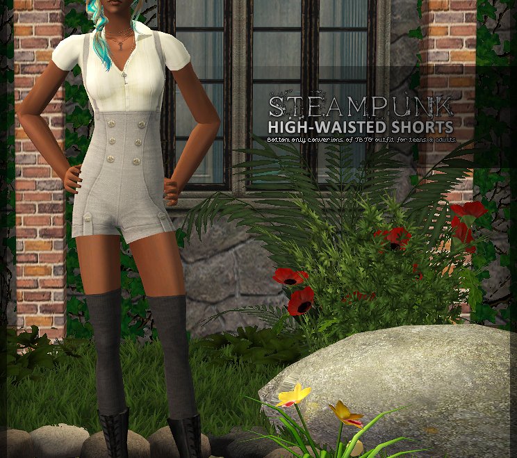 This past summer I shared some content made for a sim makeover on The Big Trade-off, one of which being some high waisted shorts over a striped shirt. It is now available as bottom only for teens and adults and can be used with most fitted tops.