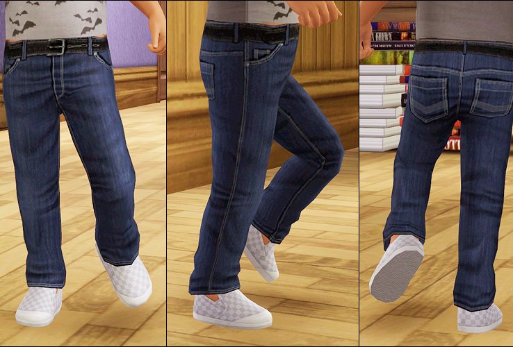 After seeing Kayleigh’s recent toddler Bustelo pants for Sims 2 I thought it might be worth a shot to manipulate base game pants to look similar. They’re not perfect but with Misomoso’s textures it is a little more convincing.