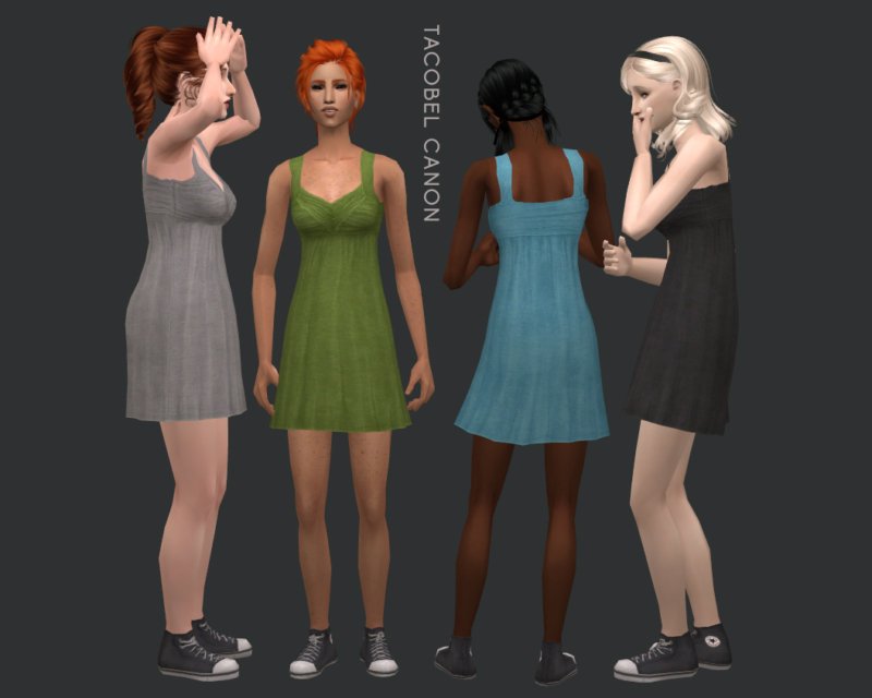 Based on my favorite dress I own, this mesh is a morph of HP’s top, Flinn’s edit of an H&M dress, and Aikea’s chucks-like shoes; includes all morphs. Textures are by Trapping and comes in five colors.