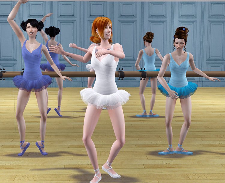 Peggy’s tutu paired with the top portion of the short wedding dress from Celebrations and Free Time ballet slippers, for teens and adults. It comes in ten single colors in light and dark shades, and five in three color variations. Meshes include morphs, are categorized as everyday and athletic, and all files have been compressorized.