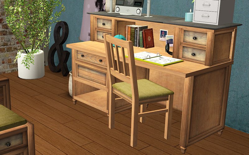 Five wood recolors of Adele’s Amelia set, which can also be used with Ja’s Amelia’s Followers and Courageous (direct download link). Some objects might not look quite right due to mapping but I tried my best to keep everything attractive. There are no fabric recolors because I failed miserably.