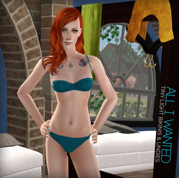 Tiny Light one piece swimwear cut into bikinis and undies for teens and adults. Although the original swimwear also came in patterns, the two piece variety are only solid colors, as well as the lace textures. The patterns didn’t really translate well but if you’d like to grab them from the originals and share them as bikinis, you are welcome to it. Perhaps someday if there is interest I will make them as tankini two pieces, but we’ll see.