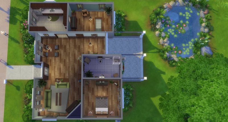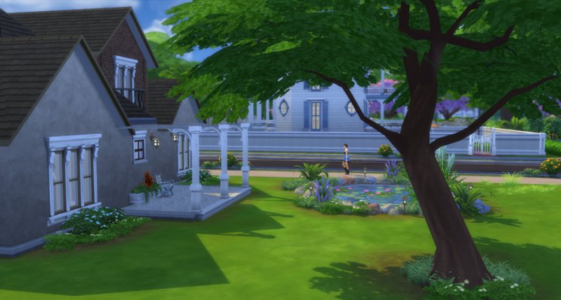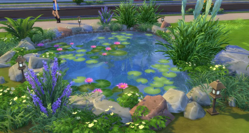 2.) The pond is actually a pool but it can not be accessed with all the rocks and plants around it. If you’d like to use it as a pool, delete some of the objects and install a ladder.