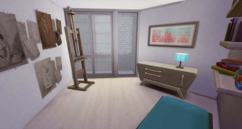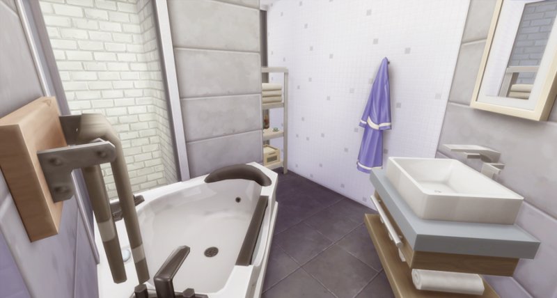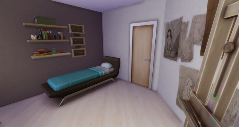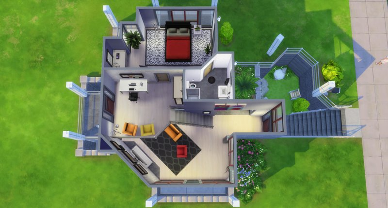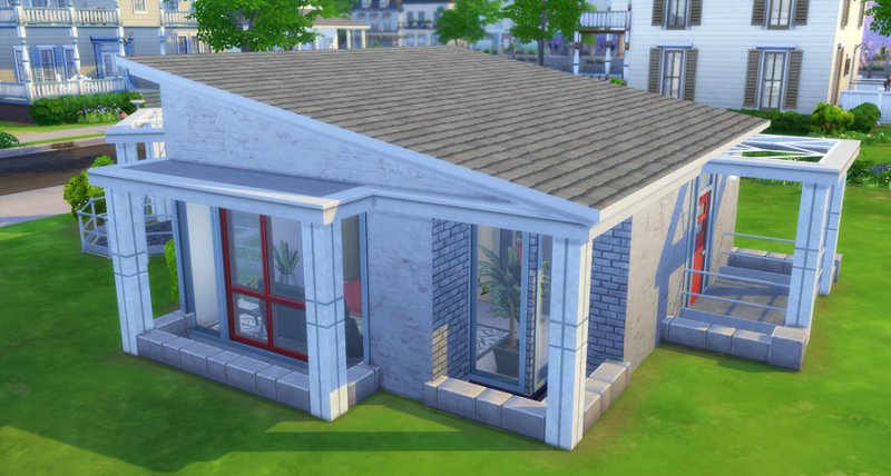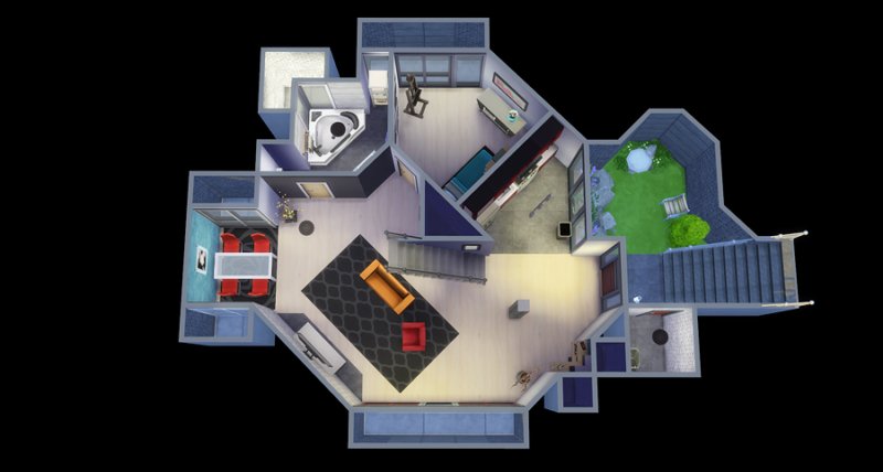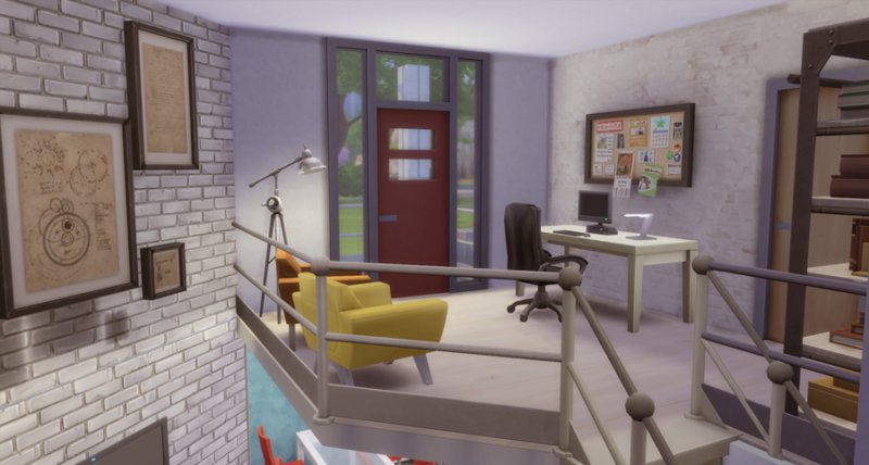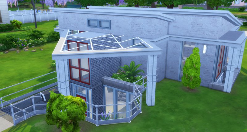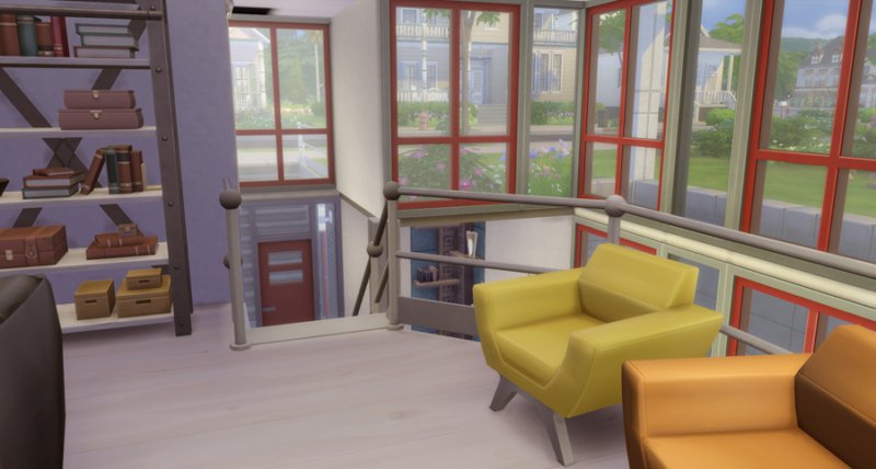 Largely inspired by The Sim Supply’s Digging Down building video, Kimmeridge features two bedrooms and bathrooms, small kitchen, fireplace, loft study, and little courtyard. Big window-wells allow light inside the lower level though a lot of fixtures are still kind of required. There is also a small room off the courtyard that houses the big trash bin… I’m not fond of seeing them out in front of the house.