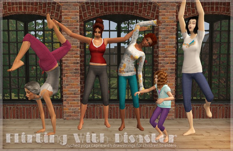 Whether your sim does yoga or lounges around the house binge watching Netflix, these ruched pants are simple and comfortable, and go well with most basic tops. They come in eight solid colors and feature (non removable) drawstring cords on the bottom hem of each leg.