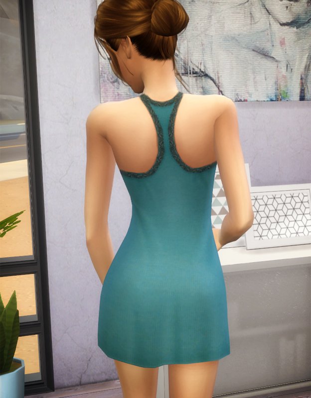 Kicking off the Under Your Skin 13th birthday celebration we have a racerback nightie with lace trim in eight colors for adult and elders, based on sleepwear by Betsey Johnson. For some reason the red buttons on the gray color look a little distorted but not on black, despite the only change being a color layer placed below it. That aside, it still looks pretty cute and it remains my favorite of all the colors.