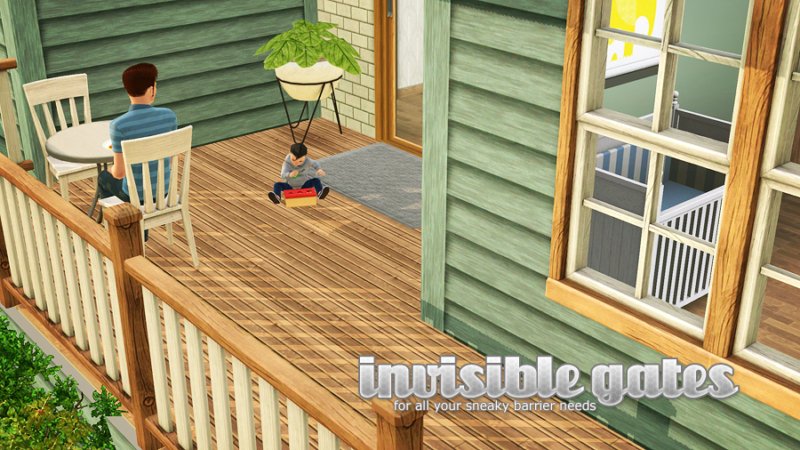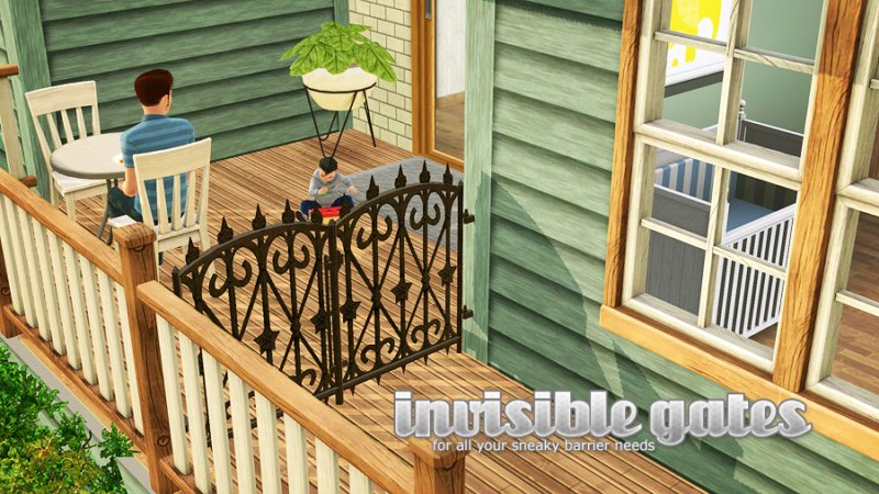 First, you’re probably wondering why you’d need an invisible gate. Does your favorite sim have a particularly adventurous toddler who gets into everything? Maybe you’d like to turn individual cabins or trailers into functional apartments. These gates, in conjunction with TB Creations invisible fence, will allow you to maintain that lovely curb appeal or modern family room while also wrangling in the wild sprog.