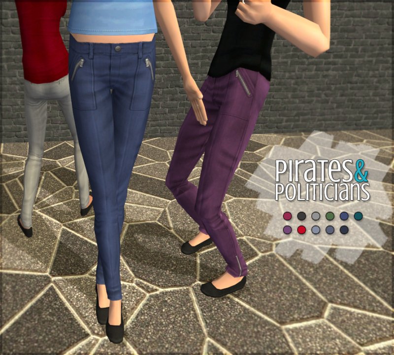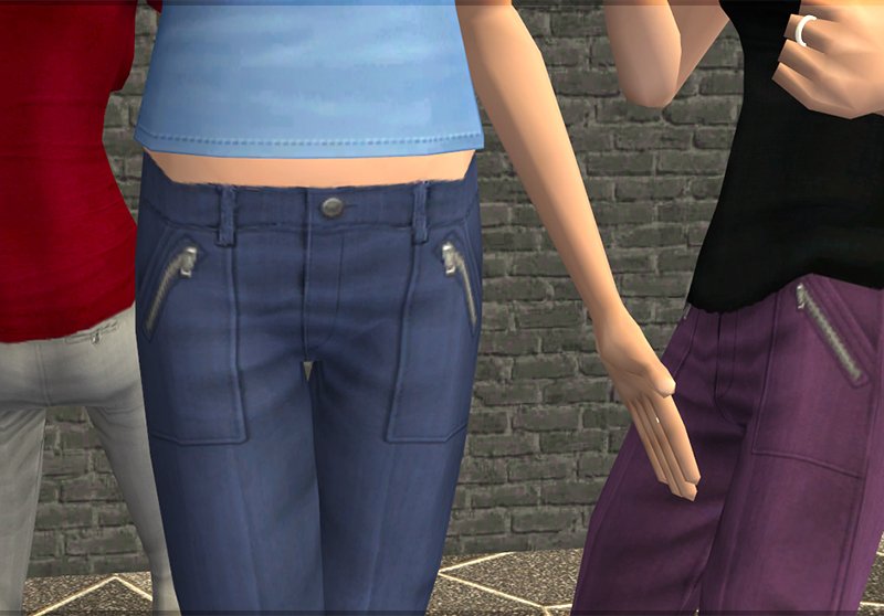 These pants come in eight colors and three denim washes, for teen and adult females. I didn’t make an elder mesh because I was already running behind, and I’ll admit I was feeling a little lazy. If anyone would like to convert it, feel free, and let me know so I can link to it.