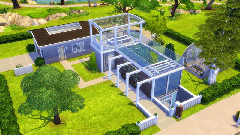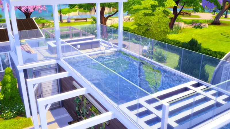 What is my thing with subterranean houses? I wish I knew. At least pools above ground are new for me. Besides the peek-a-boo pool and overuse of the glass roofs, the lot features a “garage” workshop, natural lit bedrooms below ground, a small bathroom that was difficult to get pictures of, and a back yard patio that probably has too many plants to look natural. It is what it is!