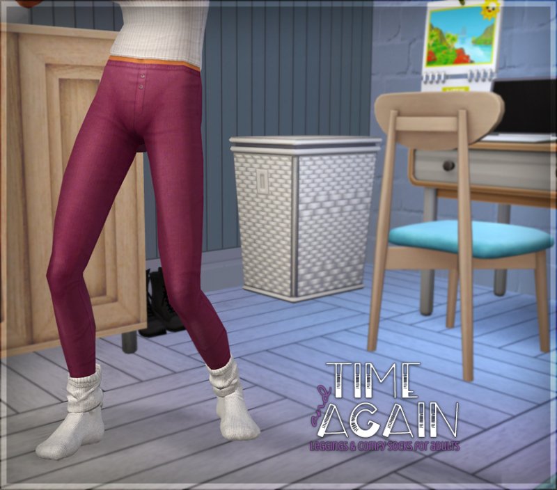 Simple leggings with button closures and slouchy socks, in eight colors for adult females. I believe the mesh has both morphs, but I can’t quite remember.