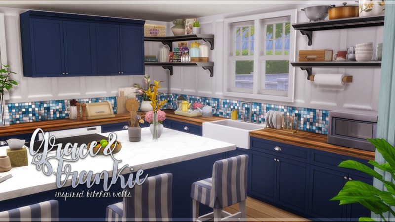 Kitchen walls inspired by the Netflix show, Grace and Frankie. Included are two packages: one with partially tiled walls in seven colors, and a full panel wall.